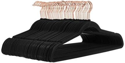 Amazon Basics Slim, Velvet, Non-Slip Suit Clothes Hangers, Black/Rose Gold – Pack of 50